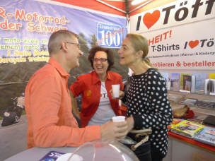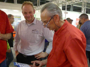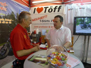 So präsentierte sich unser Stand, in diesem Jahr mit nur 2 offenen Seiten: So konnten wir unsere Gäste wieder bewirten, da Kühlschrank und Kaffeemaschine einen Platz in der hinteren Ecke fanden. In der Vitrine präsentierten wir unsere attraktiven Verkaufsartikel. Über die Tage durfte ich von einigen Helfern und Helferinnen Hilfe erfahren, da Sigrid praktisch ausfiel. Sie besuchte uns zwei Mal für ein, zwei Stunden - mehr lag nicht drin!